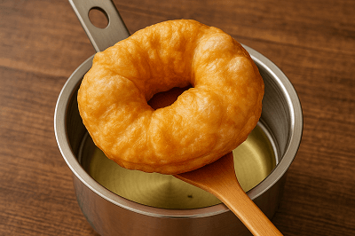 Once the batter rises, it is formed by hand into rings with a gap within the center and deep-fried until brilliant and firm on the exterior and delicate and vaporous on the interior.